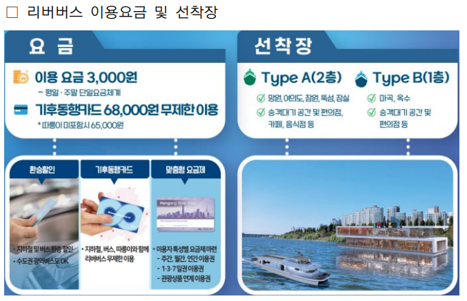교통카드와의 연계를 통해 수도권 대중교통 수단과의 환승 할인도 적용할 예정이며, 지속적인 확대 계획으로 ’30년까지 연간 250만 명 이용’을 목표로 세웠습니다.