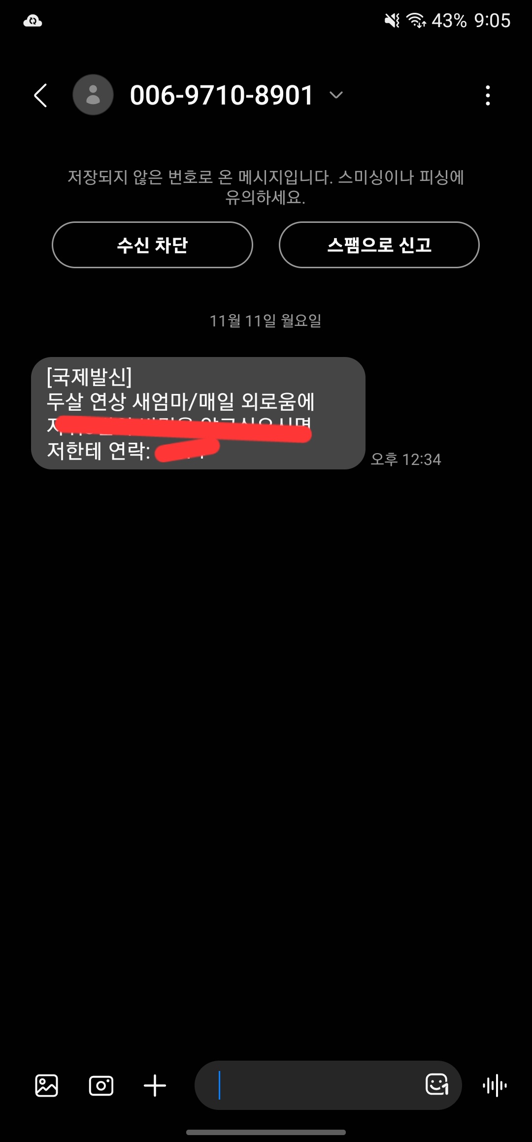 평소에 국제전화로 문자 받을 일이 거의 없으니, 이 방법으로 대부분의 스팸을 걸러낼 수 있죠.